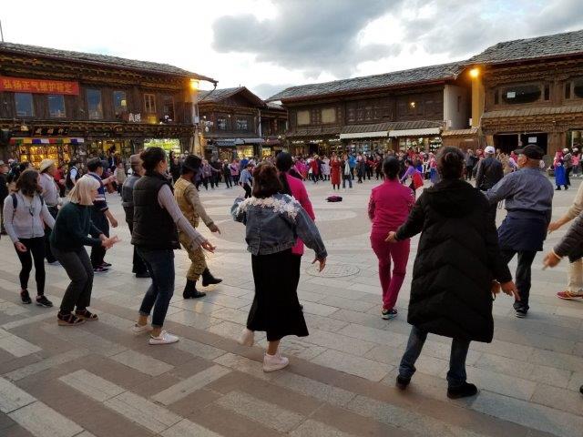 観光客(おそらく中国人)の女性たちが加わって踊っているところが
