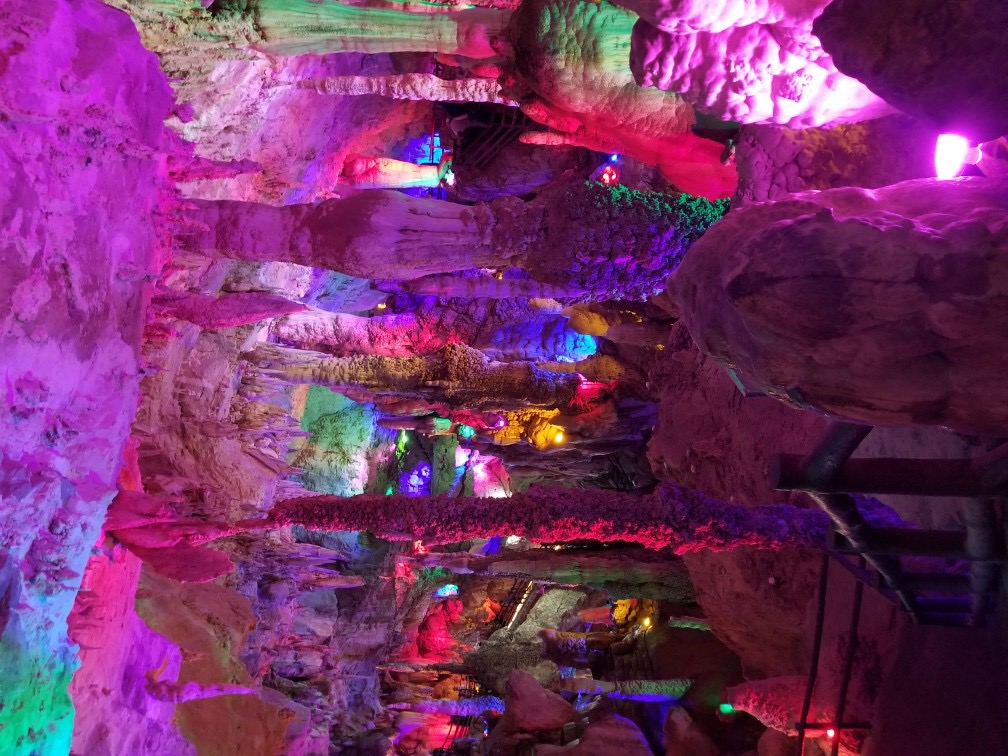 鍾乳洞内の照明が非常にカラフルで、中国らしいと思いました。