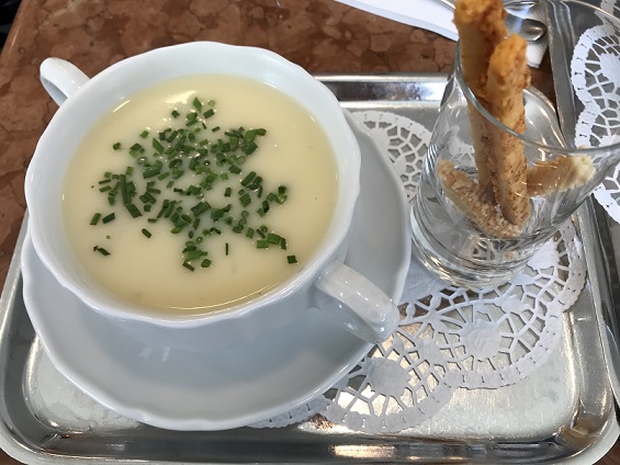 ホワイトアスパラが旬の時期で、スープが美味しかったです。