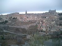 この日は、まず展望台にトレドの全景を見に行きました。冬の曇天下の風景ではありましたが、その分しっとりとした味わいを堪能できました。その後、開館時間目掛けてサント・トメ教会へ。エル・グレコの「オルガス伯の埋葬」を見ました。1枚の絵をいろんな距離から色んな角度から30分も眺めたのは今回が初めてです。最後の10分は私以外誰もいなくなり、静寂の中、1対1で名画と向き合うこともできました。グレコの家とアルカサルは休館中だったため、その後、サンタ・マリア・ブランカ教会、サンタ・クルス美術館、そしてもう一度、カテドラルに行きました。昼頃には、青い空に太陽が輝き、冬でもサングラスが必要なほど。カテドラルでもステンドグラスに陽が射して、前日の夕刻とはまた異なる趣でした。