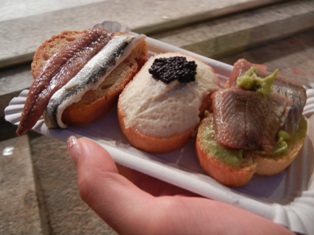サンミゲルではビールを片手に色々なピンチョスを食べまくりました。
