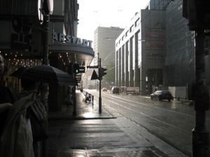 帰り道、夕立に遭い、初めて傘のお世話になりました。