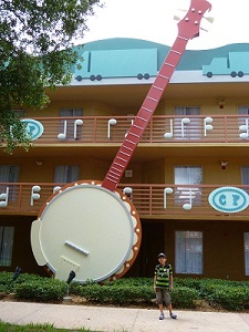 ディズニーワールドまで無料バスがありますが、敷地がとても広くて部屋からバス停まで5分ぐらいかかります。またこのバスは意外と乗車時間が長い(20分ぐらいかな)です。かなりのスピードで結構揺れますので、年配の方は1台待ってでも座った方が良いと思います。