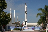 参加したケネディ宇宙センターのツアーには親子ともども大満足。月の石に直接触れたり、本物のアポロ12着陸船を見学しました。