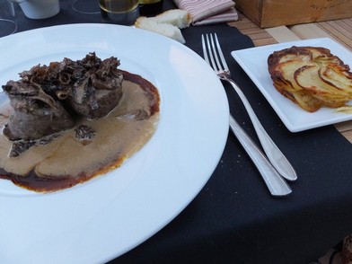 昼食をコルトンシャルルマーニュ村のレストランでいただき、