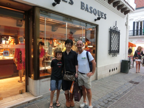 添付した写真はサン・ジャン・ド・リュズの有名なマカロンやさん(パリエス)に並んでいたときに話しかけられたフランス人親子と撮ったものです。
