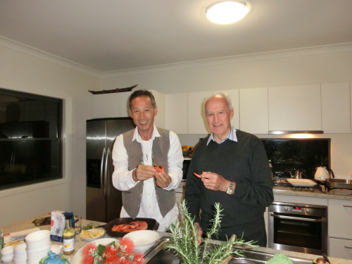 (写真:84歳のお父様と主人でディナーのお手伝い)