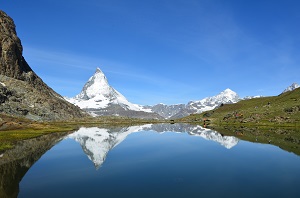 私もスイスの風景は何度か見ていますが、こんなにクリアーで劇的に美しいマッターホルンは見たことがありません!!