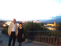 3日目夜、夢であった「フィレンツェの丘の上のレストランで妻と2人で食事をし夜景を見る」は、丘の上にあるトラットリアOmeroに行き楽しく、美味しく、愉しませていただきました。帰り道ミケランジェロ広場で、夜景を背にしての2人で記念写真はちょっとピンボケ?