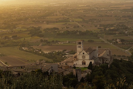 特に、アッシジの光景は、穏やかな田園風景の黄昏時の