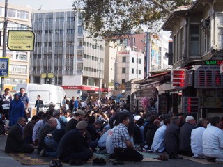 アザーンが聞こえてくると、道ゆく人々はひざまずき祈りを捧げだす。