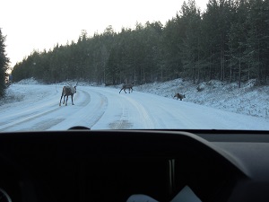 道路を横断するトナカイ、とっても可愛らしいですね♪