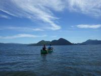 翌日は自転車で湖畔を1時間かけてカヌー乗り場まで行き、カヌーで洞爺湖を楽しみました 。洞爺湖は透明度が高いのでカヌーはお勧めです。