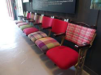 《アヴォカ村の工房・・・色とりどりの布を使った椅子のカバーが美しいです。》
