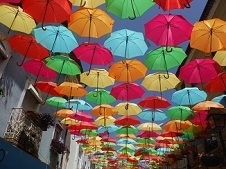 特にアゲダの傘祭りの写真は、青い空にカラフルな