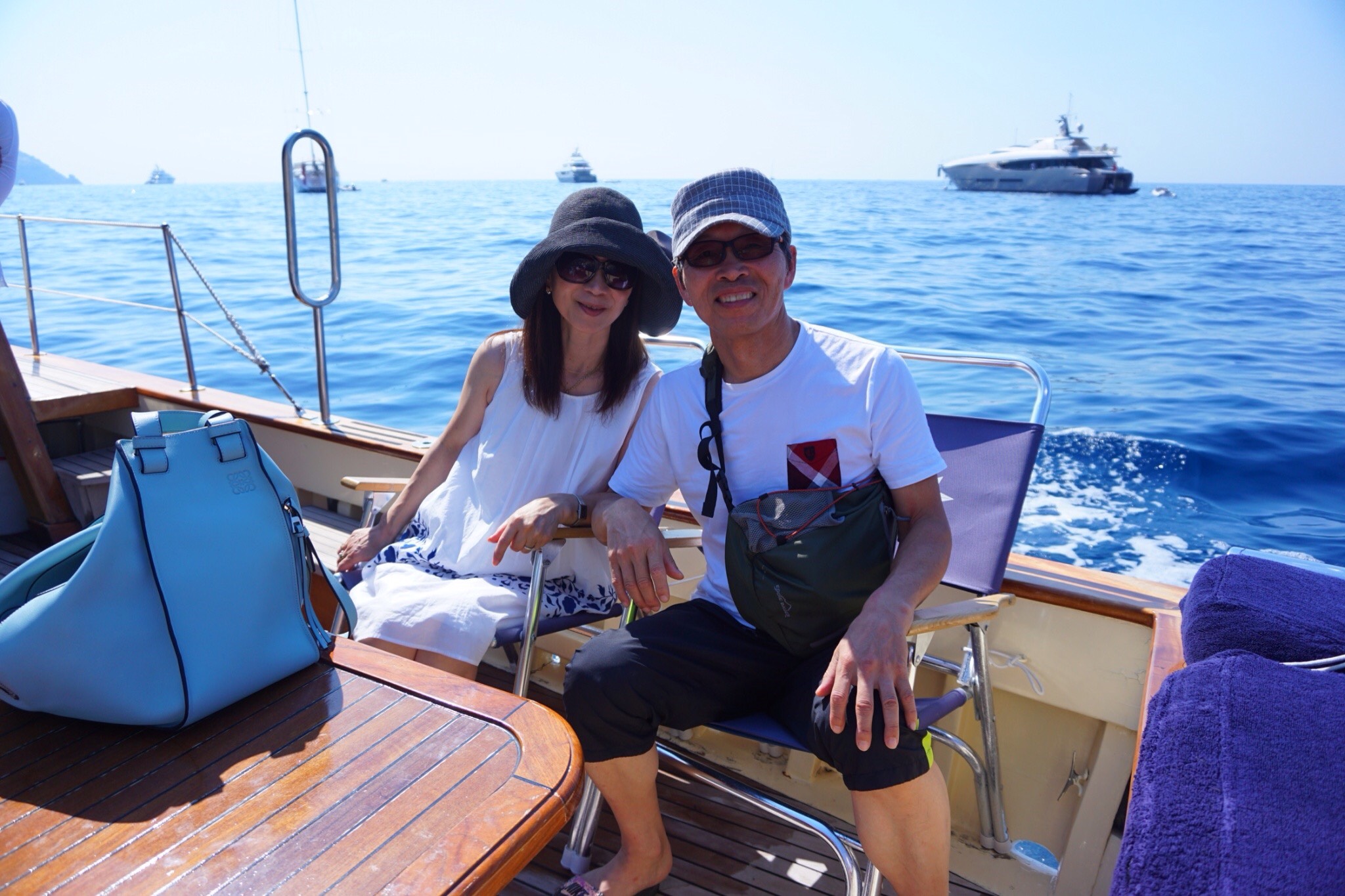 イタリアのビーチリゾートに溶け込むご夫妻のスタイルに感服いたしました。