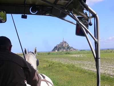 TGVとバスを乗り継ぎたどり着いたモンサンミッシェルは晴天のもと最高に美しく、馬車に乗りなが現れてくる風景にわくわくしました。