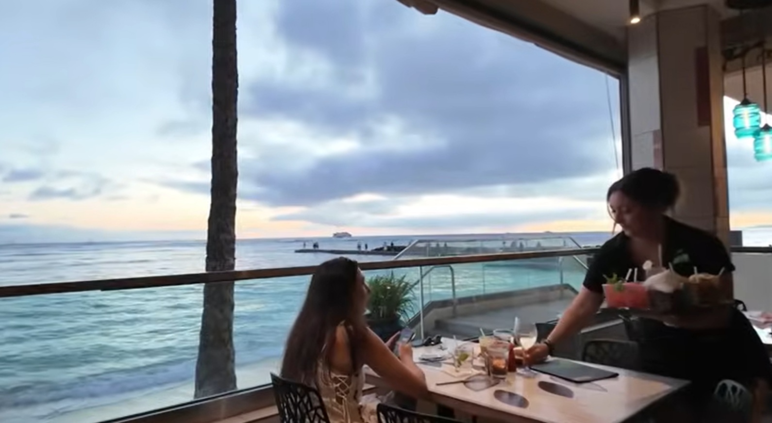 ・夜はホテルのラウンジで、サンセットカクテルを。移動疲れを癒やしつつ、ハワイの時間に体を慣らします。