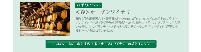 イタリアならではの自然を満喫し、その土地でしか食べられない料理に舌鼓を打ち、おいしいワインに酔いしれる。 なんて贅沢な時間でしょうか。 歴史遺産を巡る旅とはまた違う楽しさや発見がたくさんありそうですね! |