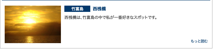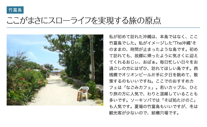 ![]() 石垣島、波照間島、西表島、竹富島などからなる八重山諸島は、日本の南の果てへの楽園の旅が楽しめます。 面白いのは、それぞれの島に独自の雰囲気がある点です。 日常から遠く離れ、大自然と遊んだり、のんびり過ごしたり、好みに応じた休日を実現できるでしょう。 |
