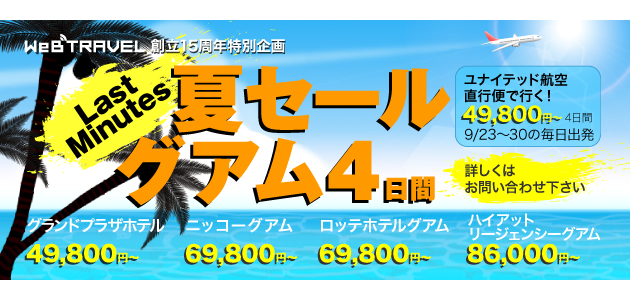 編集・発行:株式会社ウェブトラベル 発行日:2018年8月31日 ウェブトラベルホームページ (https://www.webtravel.jp/) 会社概要 (https://www.webtravel.jp/company/) お問い合わせ (https://www.webtravel.jp/company/contact.html) 配信停止 (https://www.webtravel.jp/members/admin/wt/MailMagazineSubscriptionInput) ※本メールは送信専用アドレスから送信しております。本メールに返信されてもご対応できません。 |