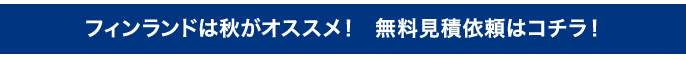 ![]() フィンランド旅行に行くのはいつがいいか。 短い夏をめいっぱい楽しむ、冬にしか体験できないことにチャレンジする……。 これまでのプロモーションで、夏・冬の狭間に埋もれていた「秋」も、充分に楽しめることがわかっていただけましたでしょうか。 |