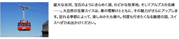 ![]() スイス観光というと、初夏から秋のイメージが強いのですが、春の足音が聞こえ始める3月初旬には、スイス各地でファスナハト(カーニバル)が開催されます。 そして雪が解ければ、お花畑が見られるシーズンが始まります。 |