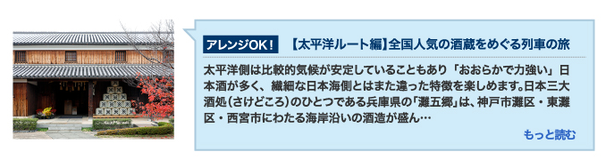 日本国内の旅行はクルマでお出かけになる方も多いと思いますが、今回ご紹介した酒蔵めぐりの旅は、なんといっても列車がおすすめです。
