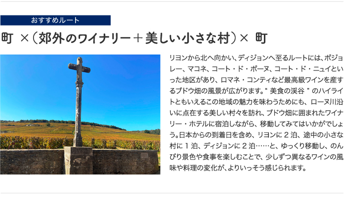 一度の旅で「美食の渓谷」といわれるローヌ川沿いのエリアを制覇するのは、駆け足でも難しいので、春・夏・秋…と移り変わるブドウ畑の風景と、その季節ごとの地元料理&ワインを楽しみながら、何度も足を運びたいですね。