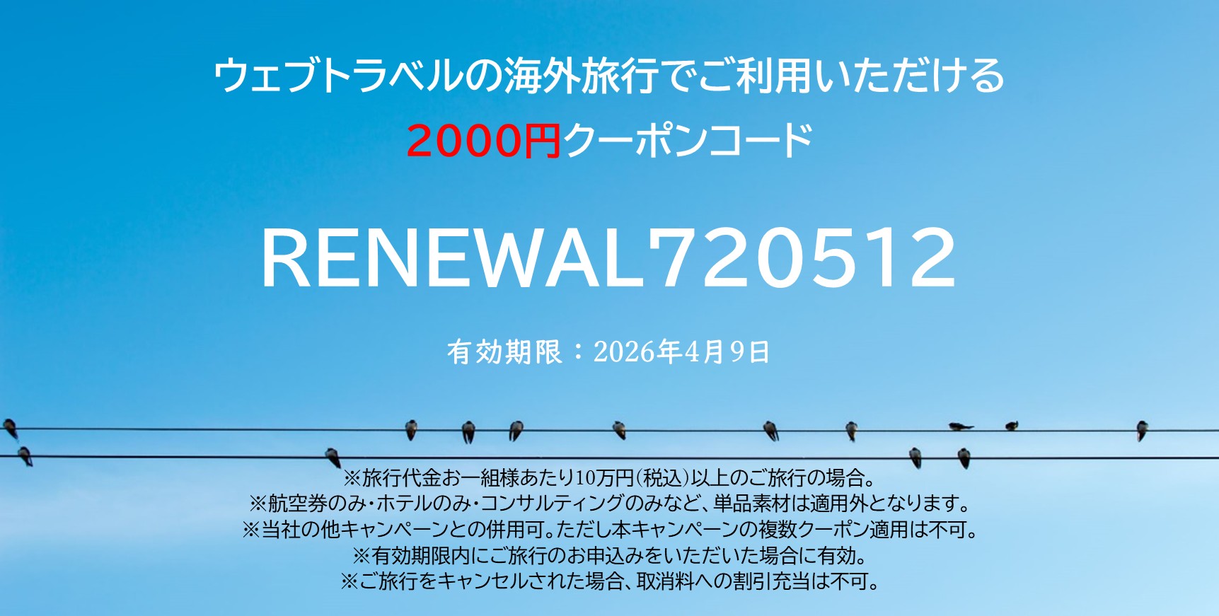 編集・発行:株式会社ウェブトラベル 発行日:2026年3月11日 ウェブトラベルホームページ (https://www.webtravel.jp/) 会社概要 (https://www.webtravel.jp/company/) |