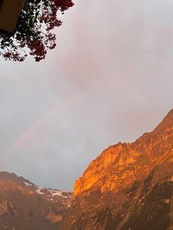 グリンデルワルトの2日目の夕方、雷が鳴り大雨強風で、思いがけず大自然を味わえたのですが、翌日、朝食をとっていた時に藤本様からメール。